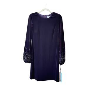 NWT Calvin Klein Velvet Embellished Balloon Purple Size 6