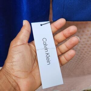 NWT Calvin Klein Velvet Royal Blue Zipper Front Loose Fit Sheath Dress size L