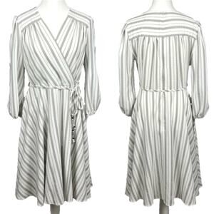 NWT Calvin Klein White Gray Striped Midi Wrap Dress Size 10