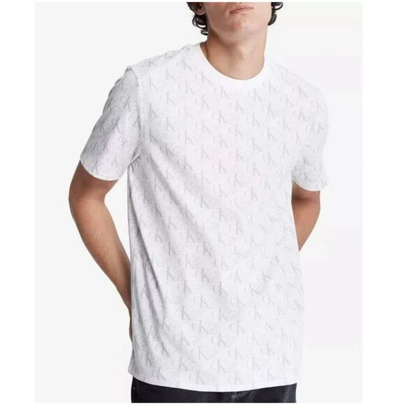 NWT Calvin Klein White Short Sleeve Classic Fit Cotton CK Tee Shirt Size Medium