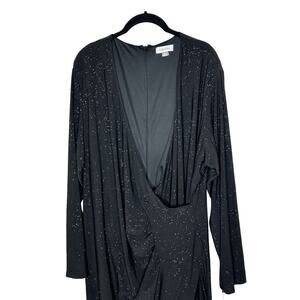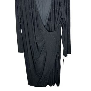 NWT Calvin Klein Women Cocktail Dress 22W Sparkling Plunging Ruching Wrap Black