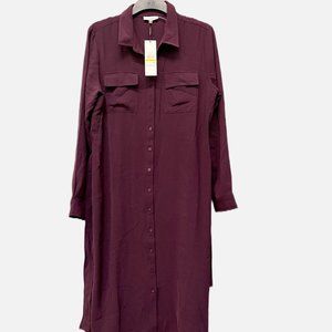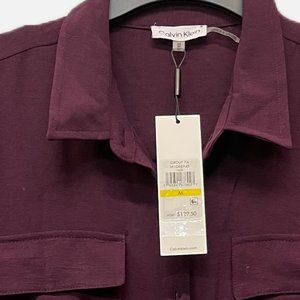 NWT! Calvin Klein Women's Belted Shirtdress - Aubergine Medium