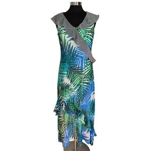 NWT Calvin Klein Women's Blue Tropical V Neck Ruffle Maxi Dress Size 8