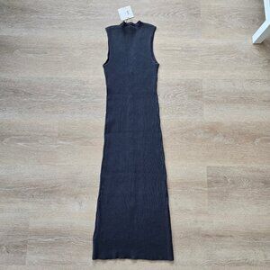 This sleeveless dress from Calvin Klein features a fine ribbed texture that creates a clean and flattering silhouette. Designed in an ebony tone, a dark greenish-gray shade with subtle olive and brown undertones, it pairs effortlessly with boots, sneakers, or heels for any season. The V-neckline and front button closure add a simple, polished finish, while the soft cotton stretch blend provides breathable comfort and flexibility.