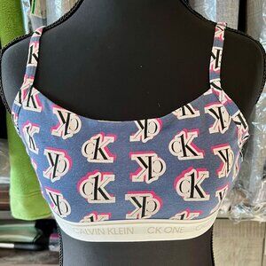 NWT Calvin Klein Women’s Logo Blue & White Unlined Sports Bralette - Size M
