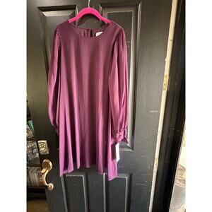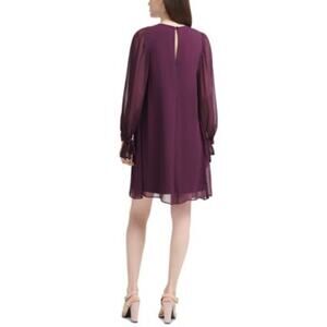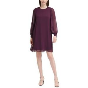 NWT Calvin Klein Women's Purple Tie-Cuff Balloon-Sleeve Dress Size 14