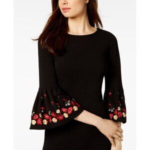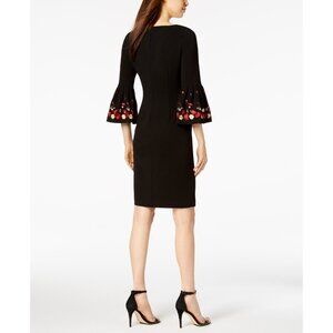 NWT Calvin Klein Womens Size 8 Black Embroidered Bell-Sleeve Sheath Dress NEW