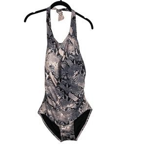 NWT Calvin Klein Womens Snakeskin Print one Piece Swimsuit Size 16 Halter Neck