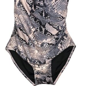 NWT Calvin Klein Womens Snakeskin Print one Piece Swimsuit Size 16 Halter Neck.