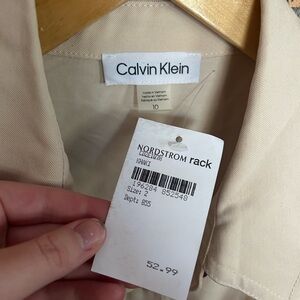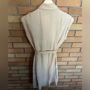 NWT Calvin Klein Women's Tan Belted Fitted Button Front Cap Sleeve Dress Size 10
