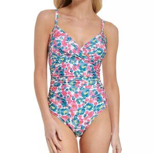 Charming florals cover every inch of this women's one-piece swimsuit from Calvin Klein, featured with a tummy-control panel at the front for a sleek finish.