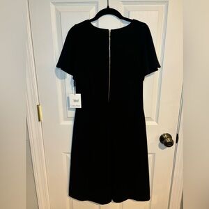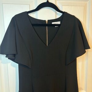 NWT Calvin Klein black a-line dress, flutter sleeves, gold back zipper, 6