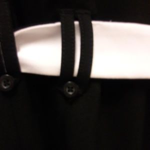 Size 8, metal, white lapels, b&w belt, mock pockets, zippered & snap closure in front. Double belt loops. Beautifully madea