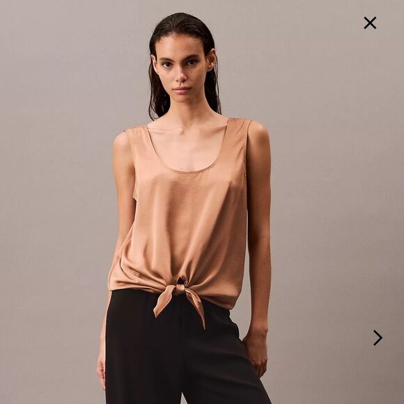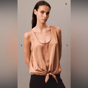 NWT Calvin Klein tan satin tie front tank top size M