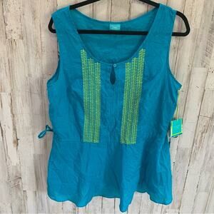 NWT Calypso St. Barth for Target Blue Woven Side Cinch Cotton Top Lightweight