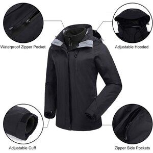 NWT Camel Crown Womens Ski Jacket Detachable Hooded Coat Black Size L