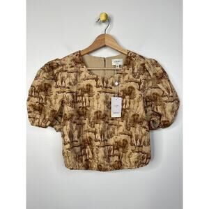Cami NYC Flor Crop Versatile Puff Sleeve Blouse Top Women's Desert. New with tag!