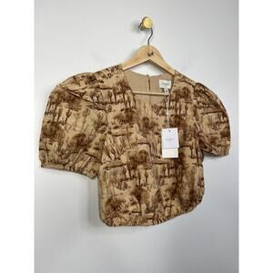 Cami NYC Flor Crop Versatile Puff Sleeve Blouse Top Women's Desert. New with tag!