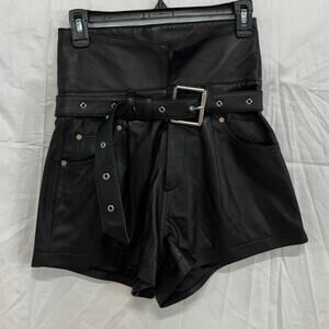 NWT Camila Coelho Elvira Leather High Waisted Belted Short Black Women's Size XS