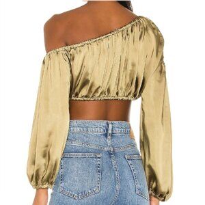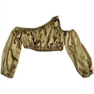 Style Tags: camila coelho, revolve crop top, xxs satin blouse, olive green top, statement blouse, long sleeve crop, off shoulder blouse, one shoulder top, party blouse, cocktail top, night out top, designer blouse, revolve exclusive, petite size top, trending satin top