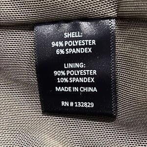 Self: 94% poly, 6% spandexLining: 90% poly, 10% spandex.. Machine wash.