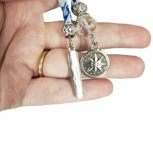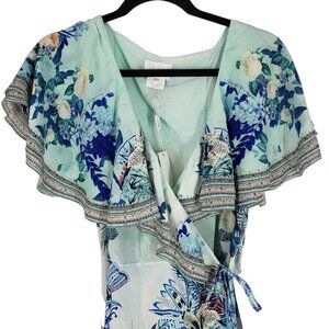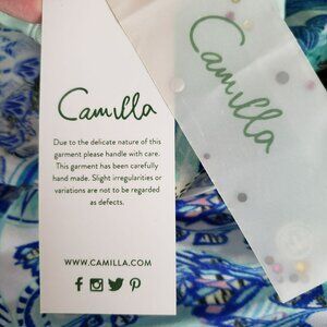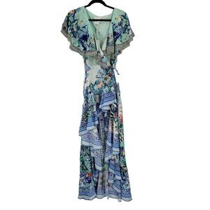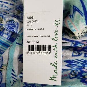 NWT Camilla Frill Sleeve Long Maxi Dress Wings of Luxor Blue White Egyptian M