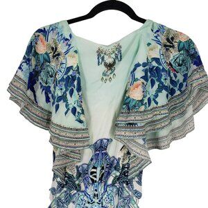 NWT Camilla Frill Sleeve Long Maxi Dress Wings of Luxor Blue Crystal Embellished