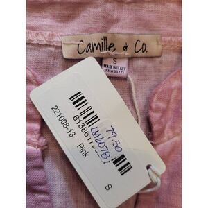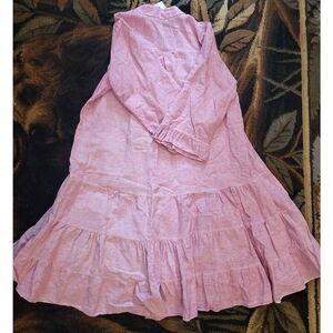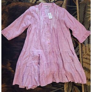 NWT Camille+ Co Dress Women's Small Pink Linen Tiered Mini Button Ruffle Cottage
