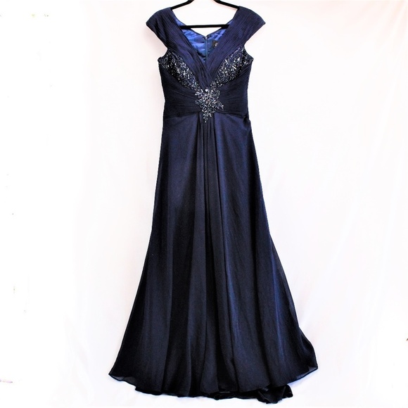 NWT Camille Women Embellished Dark Blue Maxi Dress Size 8 !