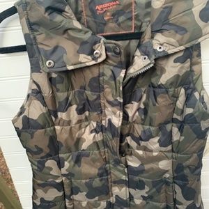 New Arizona Jean Co Camo vest. Perfect for the fall weather. Center zipper and snap buttons. Side pockets Women's vest.