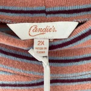 NWT Candies Juniors Plus 2X Pink Stripe Cozy Soft Mock Neck Sweater Top NEW