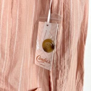 New with tags Candie's light pink and white striped linen blazer with one button closure. Size XS but fits oversized and could also fit a small.