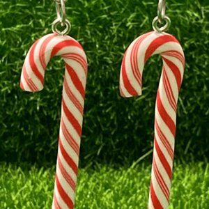 Crafted with meticulous attention to detail, these earrings feature miniature candy canes, traditionally associated with Christmas and the winter holidays. The iconic red and white stripes are beautifully replicated in these earrings, capturing the essence of this beloved holiday treat.