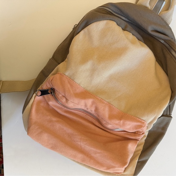 NWT canvas backpack. Cream, tan/olive, pink colors. Never used.