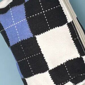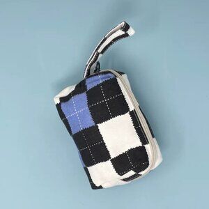 NWT Canvas Zippered Blue Patchwork Makeup Clutch