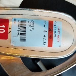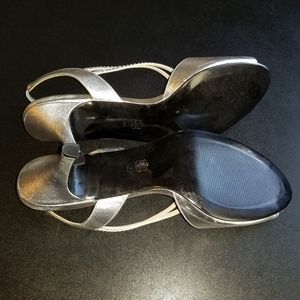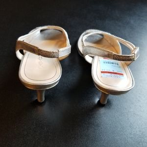 NWT Caparros philomena silver heels with sparkly stones. adorable, kittenish, stylish, sophisticated. open toed, slingback. perfect for a night on the town, a holiday party, or simply dressing up any outfit. size 10