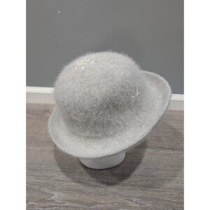 NWT Capelli Women's Hand Made Wool Angora Blend Gray Fedora Hat Snowflakes Soft