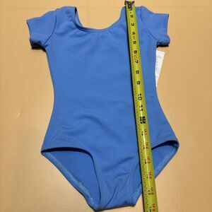 Brand new with tags. Front lined girls leotard. Shoe sleeve, blue color. Size small in girls. Can refer to pictures.