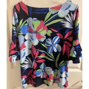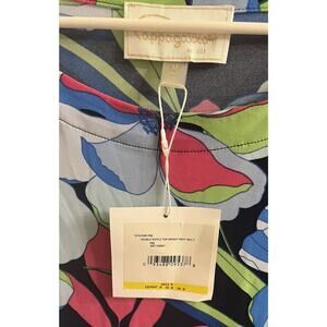 NWT Cappagallo Double Ruffle Bright navy multicolor Top Size Medium Floral Shirt