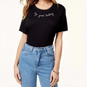 NWT Carbon Copy Black Hey Good Looking Graphic Embroidered Tee M