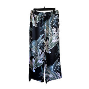 Features: new with tags, great condition, no notable flaws, very soft and silky feeling material, 100% polyester, wide leg, elastic waist with drawstring, bird of paradise design, size large.