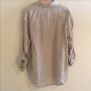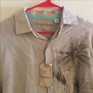 Brand new Caribbean Button down! It is tan and very comfortable! All clothes are pet and smoke free. I will consider reasonable offers!