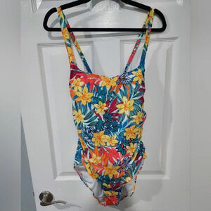 NWT Caribbean Joe Paradise Multi Standard Shirred One Piece Swimsuit in Size 16