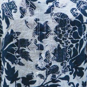 Beautiful navy and white floral print tunic. Front embroidered and adorned with tiny clear sequins.