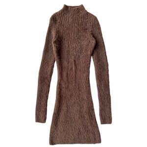 NWT Carli Bybel x Missguided Fluffy Knit High Neck Bodycon Mini Dress Brown. Size 2.