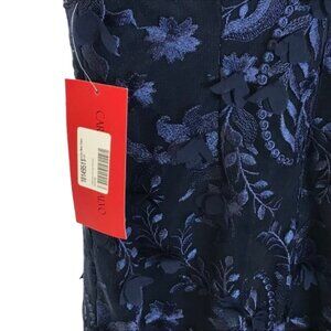 NWT Carmen Marc Valvo Infusion Womens Size 8 Navy Blue Floral Appliqué Dress NEW