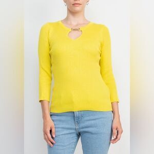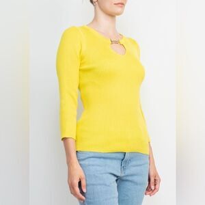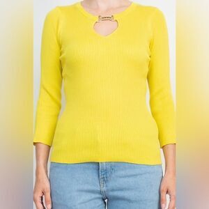 NWT Carmen Marc Valvo Neck Cutout Yellow Ribbed Pullover Size M