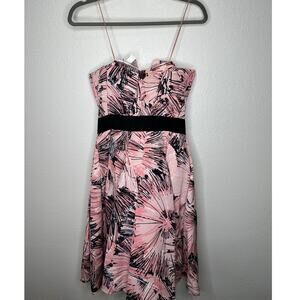 NWT Carolina Herrera Splash Parasol Print Faille Strapless Cocktail Dress in Blossom Pink/Sorbet Black