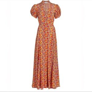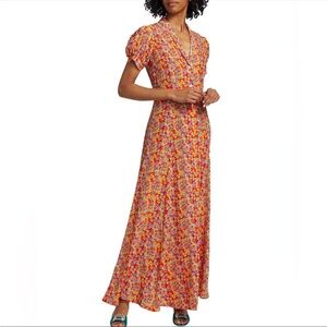 NWT Caroline Constas Bel Silk Ditsy Floral Button Up Boho Maxi Dress