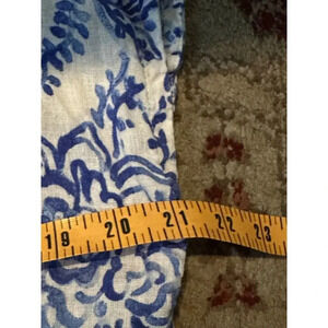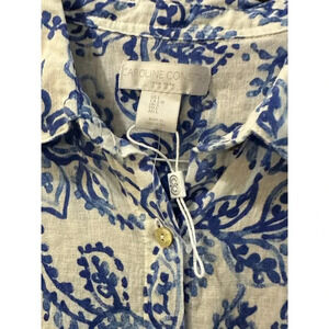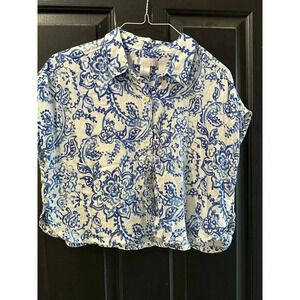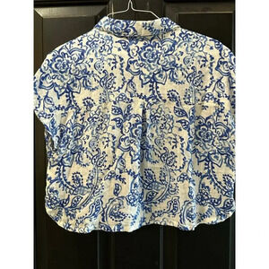 NWT Caroline Constas Blue & White Floral Linen Blend Cropped Top Size Large